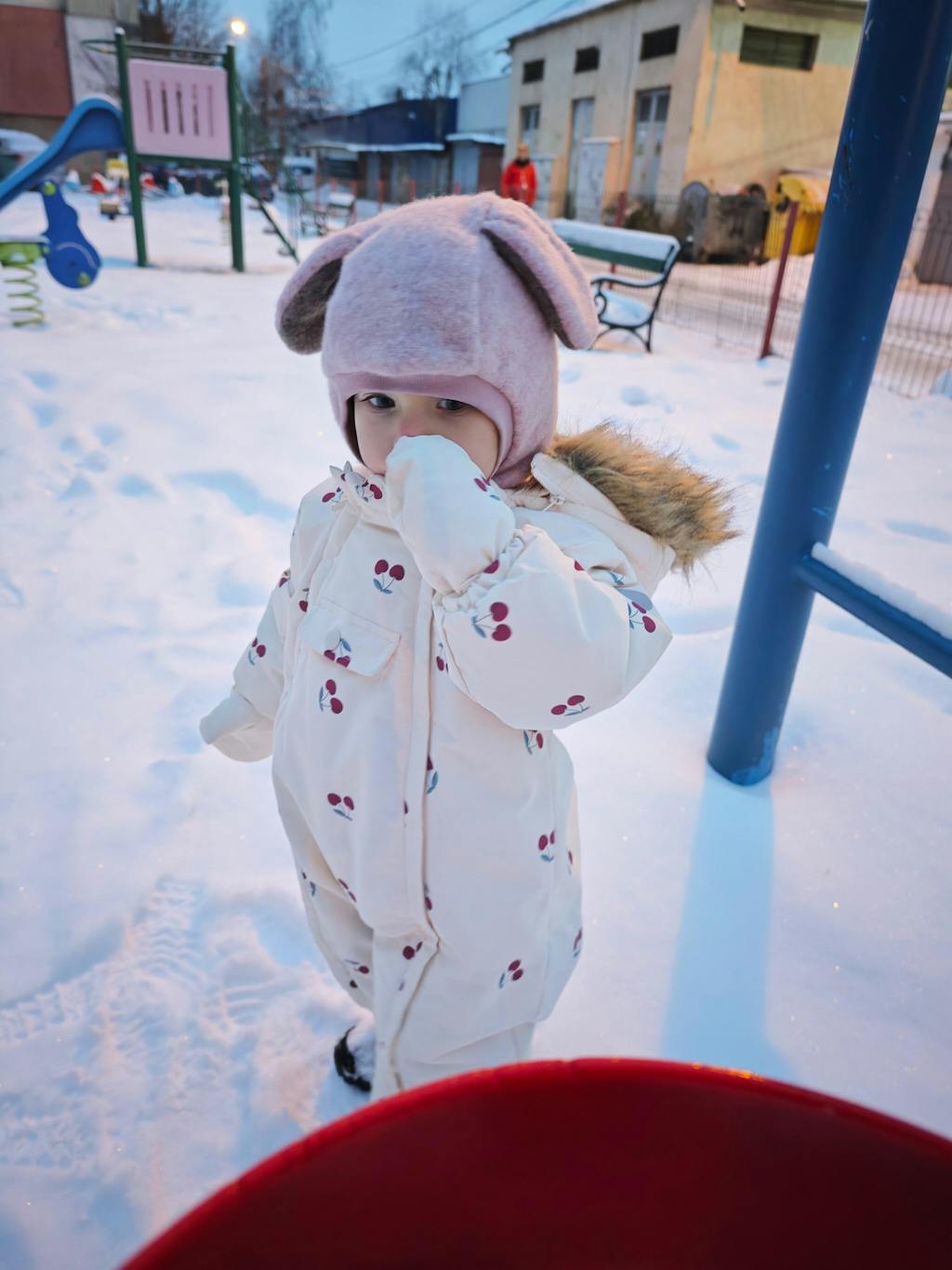 Cagulă călduroasă și confortabilă, care protejează urechile, fruntea și ceafa de frig. Are doua urechi simpatice de iepuraș.
